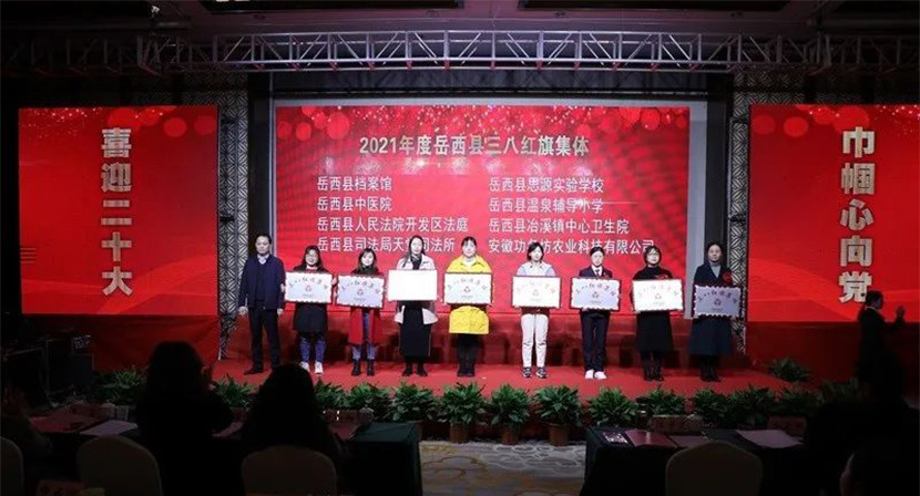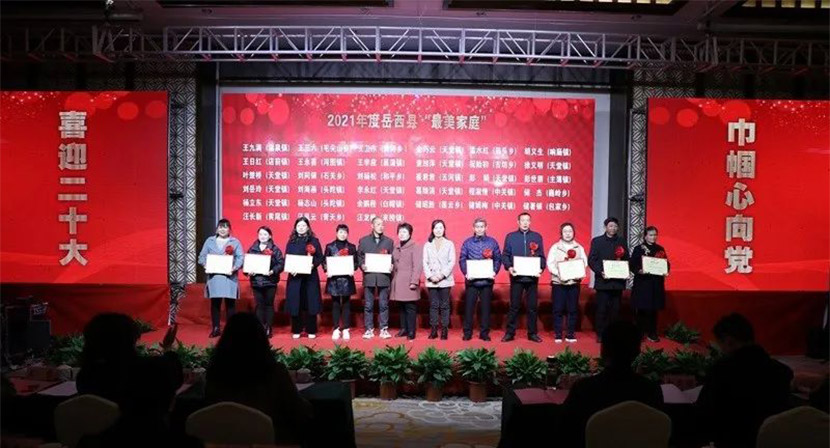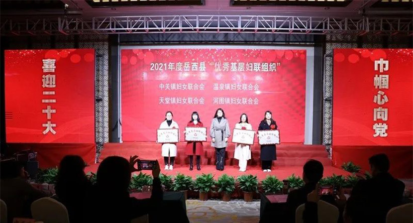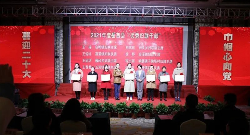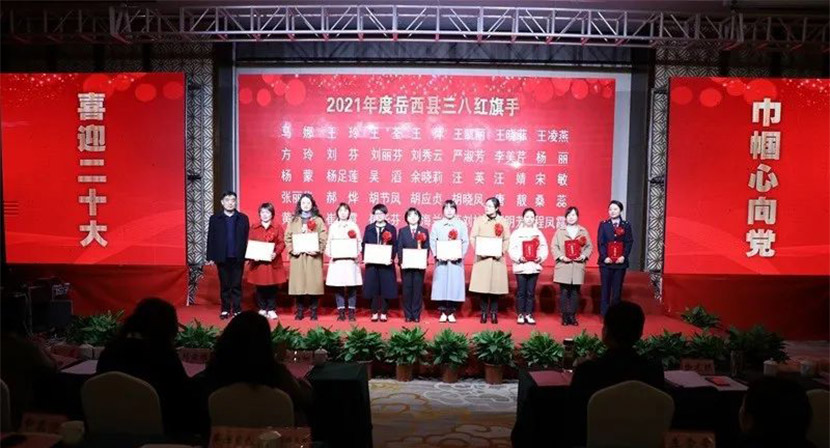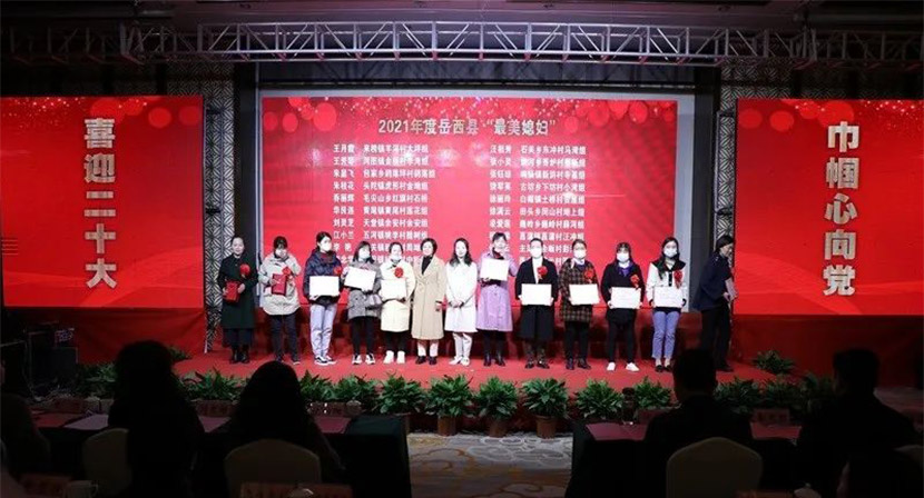 会议表彰了2021年度三八红旗集体、三八红旗手、巾帼文明岗、巾帼建功标兵、优良基层妇联组织、优良妇联干部、美丽庭院示范户、最美家庭、最美婆婆、最美媳妇。县巾帼宣讲团成员县税务局一级行政执法员王凯丽、县实验小学教师储君、安徽红方工艺品有限公司总经理方红、县委党校教师陈芳芳等先后作学习贯彻党的十九届六中全会精神宣讲,用“小故事”说“大道理”,用“百姓话”讲“大众理”,不断增强新时代文明实践的吸引力、凝聚力、向心力、影响力,引领广大妇女知党情、感党恩、听党话、跟党走。余龙根在讲话中希望广大妇女要胸怀大局,坚定信念,书写多彩人生。要传承文明,弘扬美德,营造社会新风气。要与时俱进,自强不息,塑造时代女性新形象,以更加昂扬的精神、更加务实的作风,为建设新阶段现代化美好岳西不懈奋斗、再谱新篇。