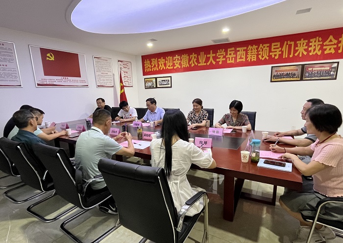 最后,刘盛全院长代表来访一行讲话:一、此次来访收获很多,希望双方加强联系;二、推动校企合作,此次来访的教授们可以利用自己的专业领域与商会的会员企业建立校企合作,提供技术支持,推动家乡产业发展;三、岳西县是农林大县,安徽农业大学作为安徽省第一家农林高等院校,希望通过商会的平台,利用安徽农业大学的资源为岳西县的产业做出贡献;四、推动科技成果转化,服务企业,服务岳西,为建设美好乡村,推动美好岳西建设做出更大贡献。